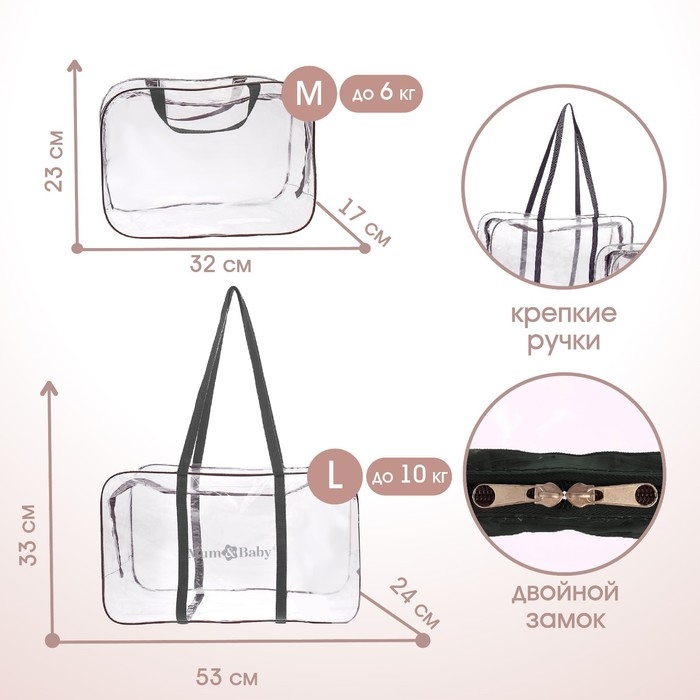 Сумка в роддом с косметичкой «Сердце», набор 2 шт., 50х31/36х25, цвет прозрачный/черный, Mum&Baby