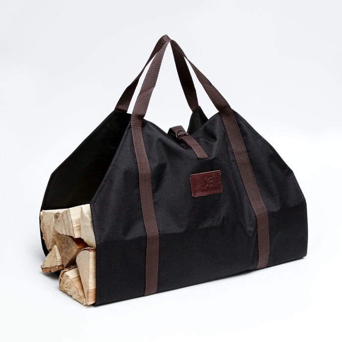 Сумка "Весёлый трубочист.УСИЛЕННАЯ" для переноски дров с ручками из стропы, 45х86 см, черная