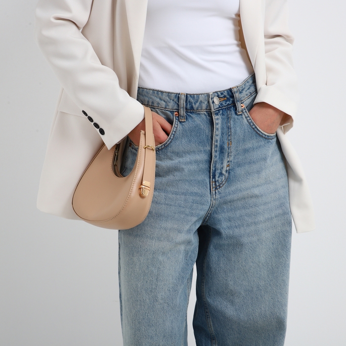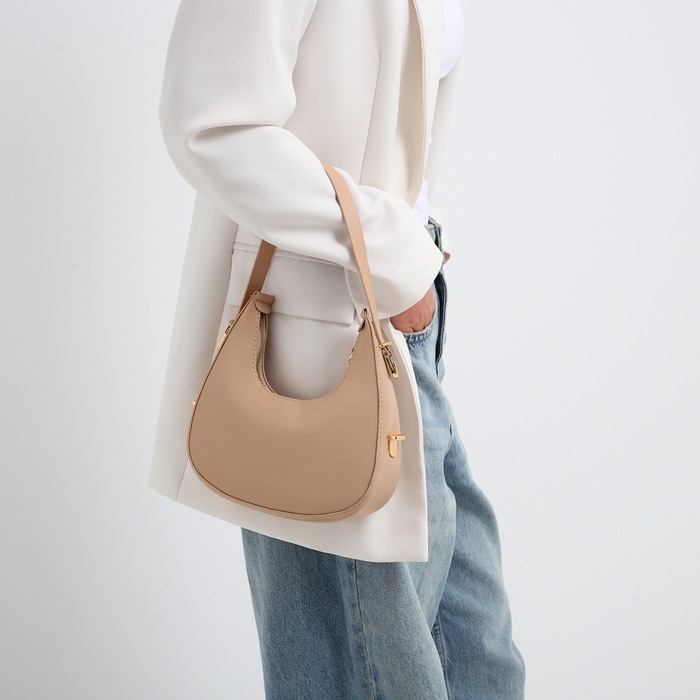 Сумка женская багет на молнии, цвет бежевый