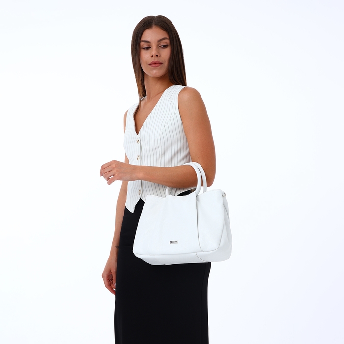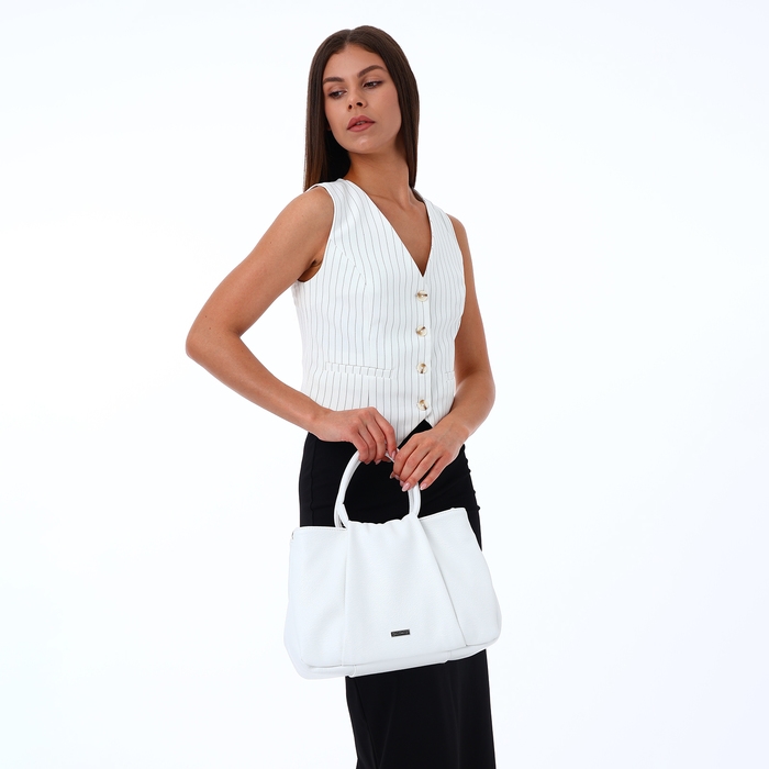 - Стильный внешний вид: аккуратная форма и универсальный белый цвет делают сумку подходящей как для повседневных, так и для деловых образов.