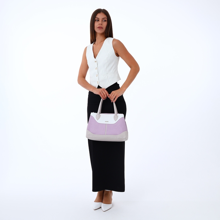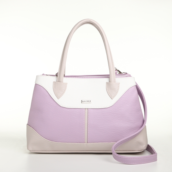 Эта стильная сумка от бренда Саломея легко добавит яркости вашему образу благодаря сочетанию белого и сиреневого цветов.