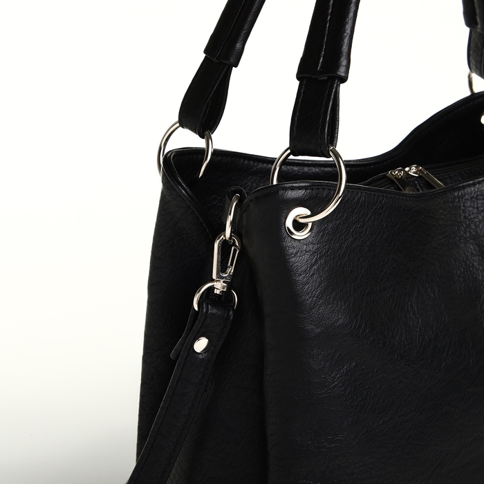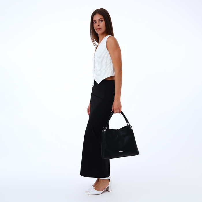 Чёрный цвет добавляет универсальности, позволяя сочетать сумку практически с любым нарядом.