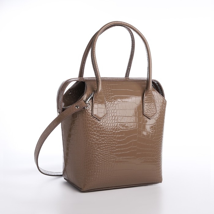 Сумка женская на молнии, с косметичкой, цвет капучино