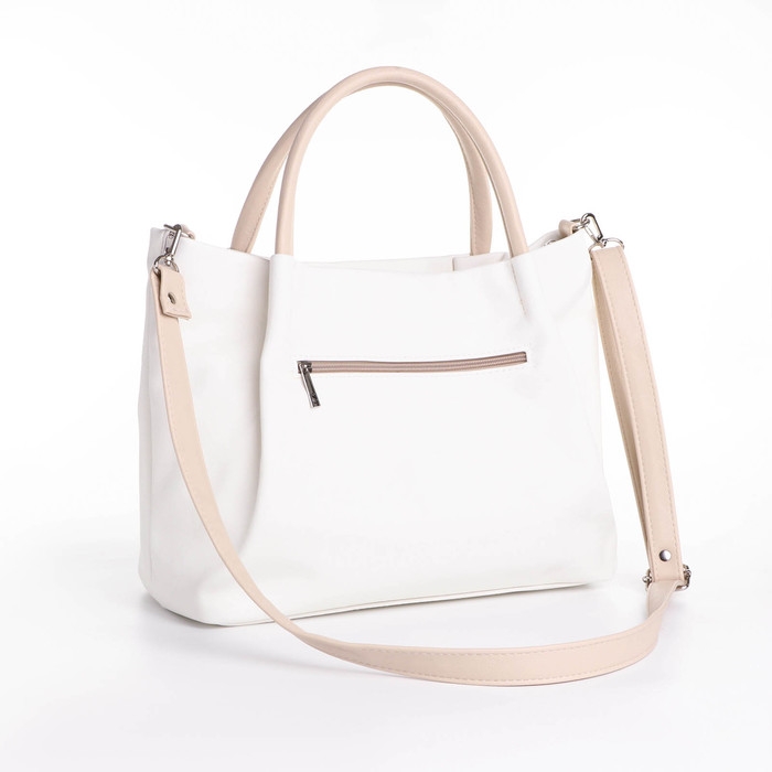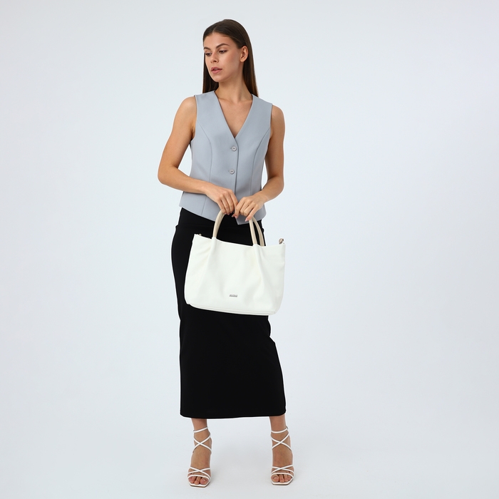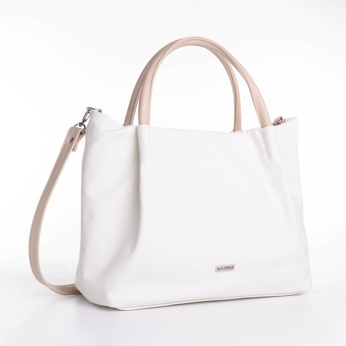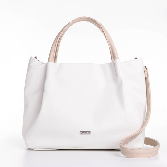 Сумка женская, средний размер, длинный ремень, цвет белый