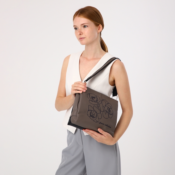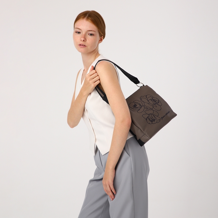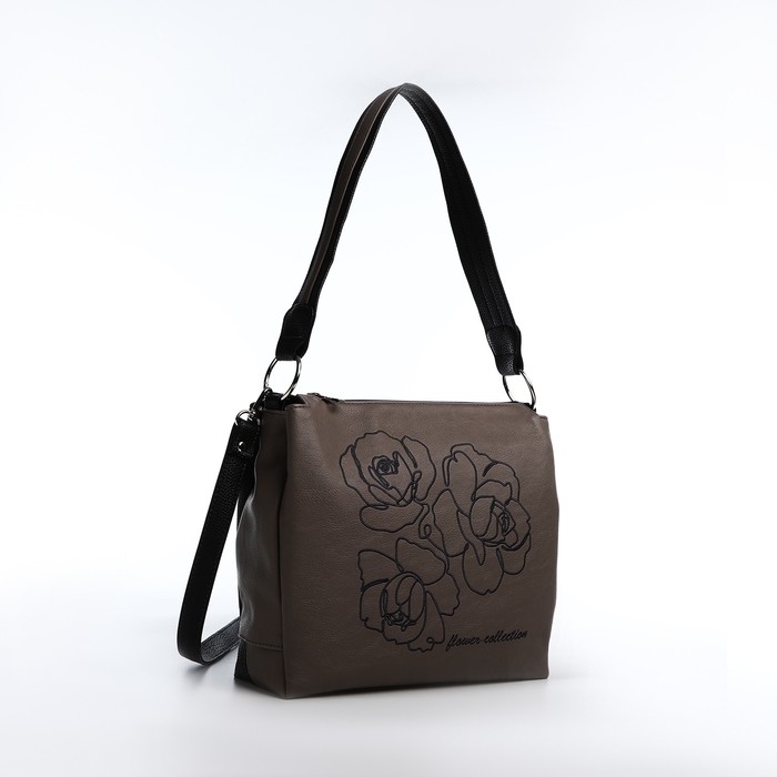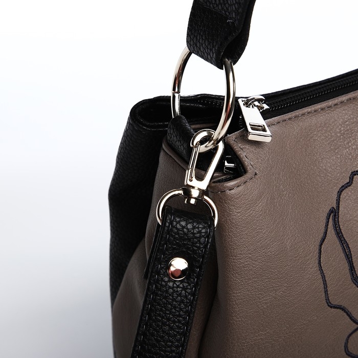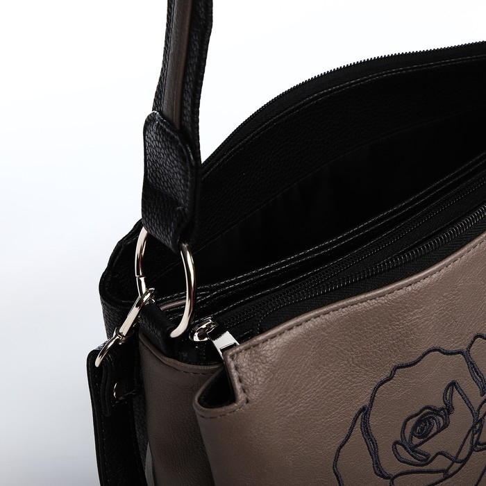 Сумка женская "Золотой Дождь" на молнии, цвет коричневый/чёрный