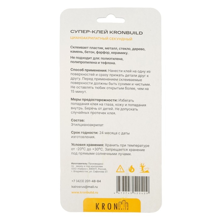 Супер-клей KRONbuild, цианоакрилатный, 3 г