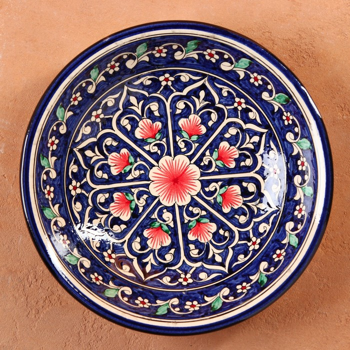 Супница Риштанская Керамика "Цветы", 28 см, синий
