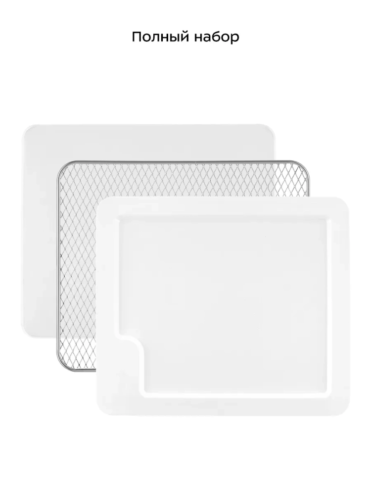 В комплект сушилки входят 6 металлических поддонов, 6 силиконовых ковриков и 1 пластиковый поддон.