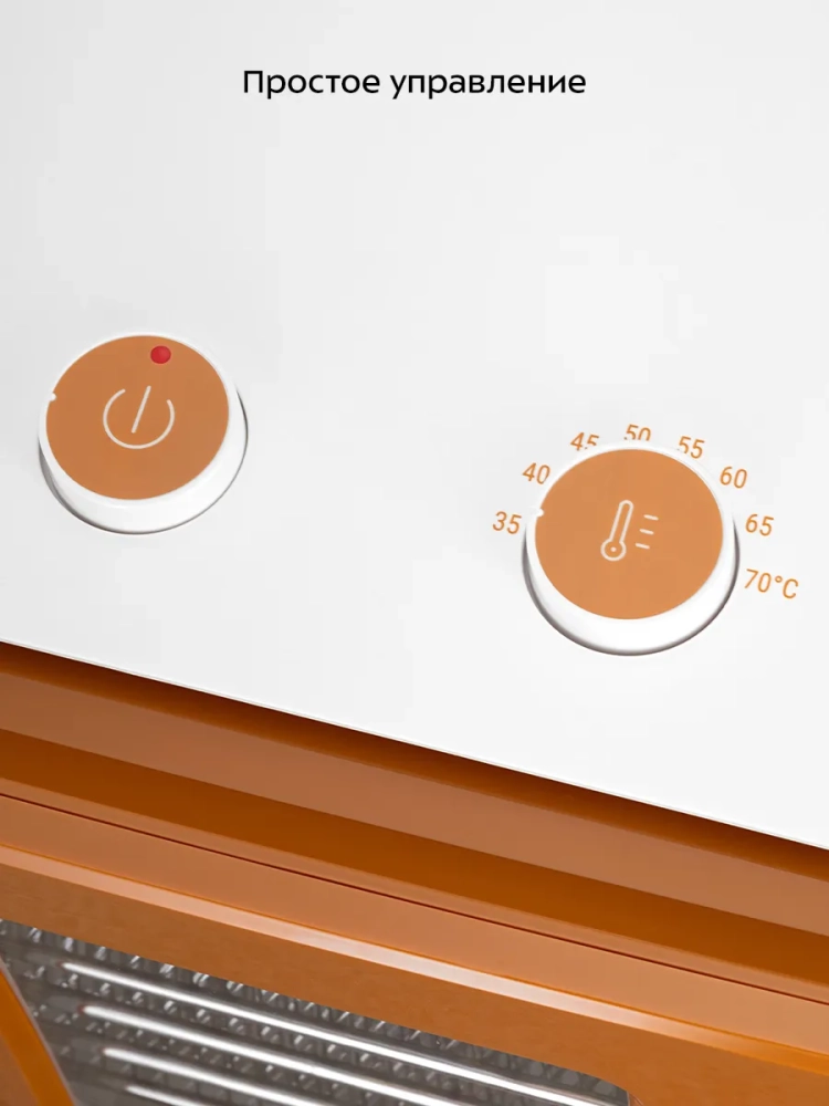 Прибор позволяет установить температуру сушки от 35 до 70 градусов. У сушилки плавная регулировка температуры.