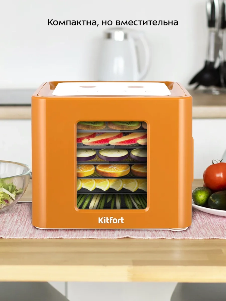 Электрическая сушилка Kitfort KT-4947 предназначена для сушки овощей, фруктов, ягод, грибов, корнеплодов, трав и зелени, а также хлеба.