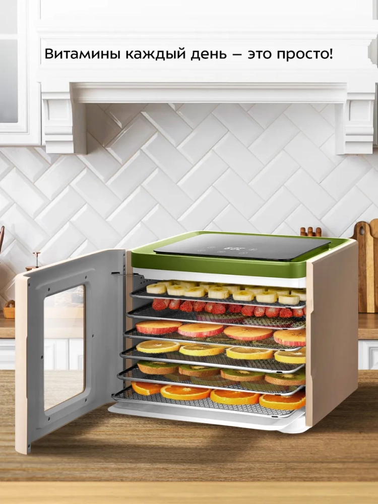 Электрическая сушилка Kitfort KT-4948 предназначена для сушки овощей, фруктов, ягод, грибов, корнеплодов, трав и зелени, а также хлеба.