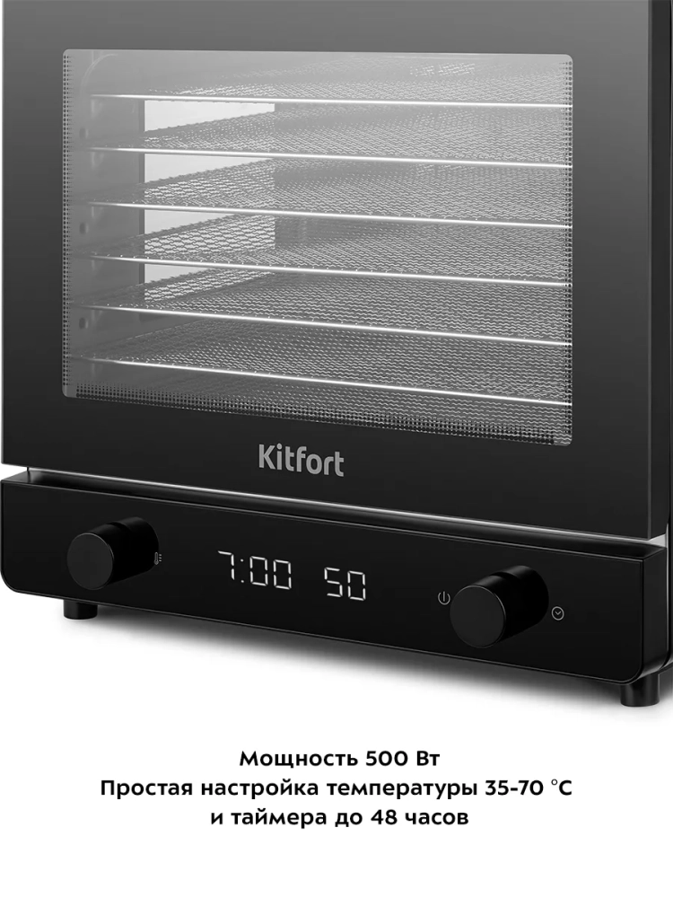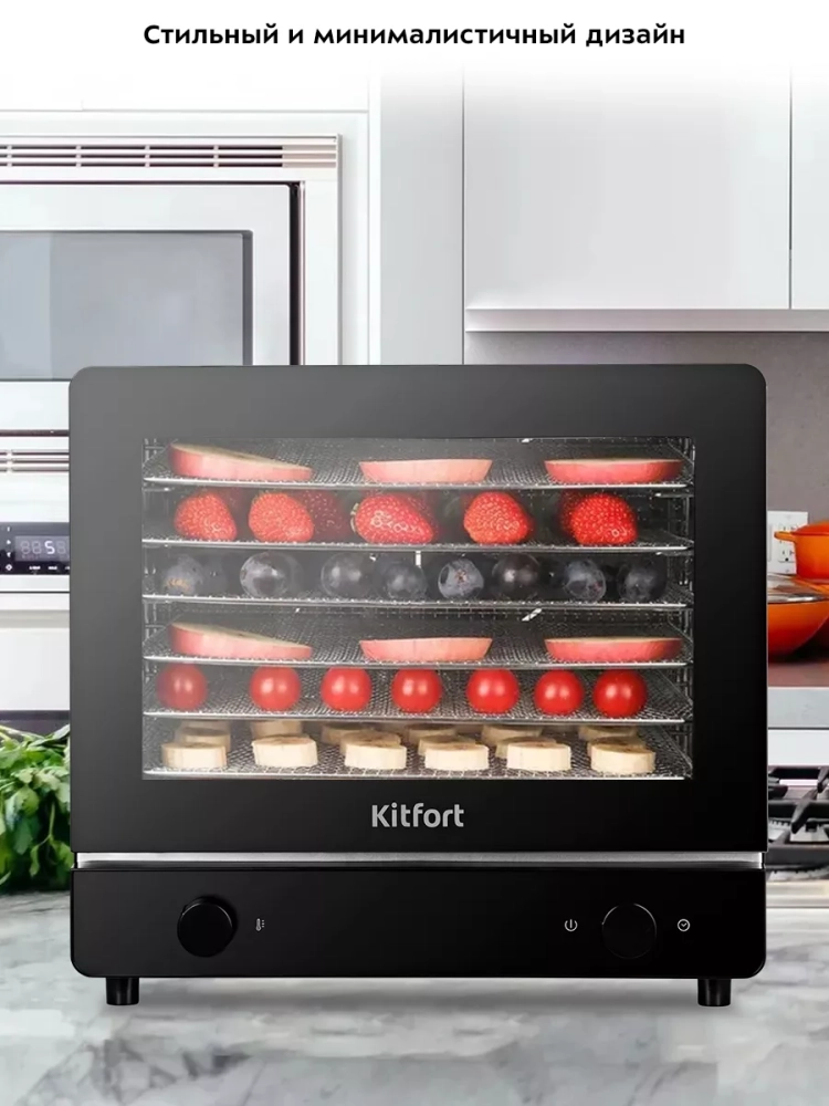 Электрическая сушилка Kitfort КТ-1960 предназначена для сушки овощей, фруктов, ягод, грибов, корнеплодов, трав и зелени, а также мяса и рыбы, хлеба.