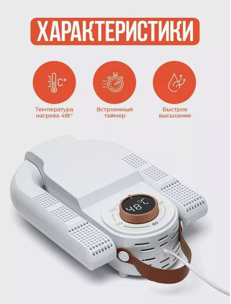 Электронная сушилка для обуви может высушивать обувь максимально полно и быстро, работая от сети 220. Электросушилка сушит на 360 градусов, не оставляя мертвых зон в вашей обуви. Электрическая сушилка за счет подачи горячего воздуха (температура 50-60 градусов) ускорит вашу сушку. Технология контроля температуры складной сушилки защитит вас от перегрева и короткого замыкания. Сушилка для вещей станет незаменимым помощником для вашего дома. Обладает умным таймером, автоматическим выключением. Длину времени можно определить в зависимости от сухости обуви. Складной механизм сушилки позволяет сохранить компактность, чтобы вы легко могли хранить её в шкафу, на полках, в чемодане. Свободно регулируемая стойка в соответствии с обувью, подходит для тапочек, кожаной обуви, повседневной обуви, спортивной обуви, сапог и т. д. Такая сушилка - отличный выбор, чтобы ваша обувь оставалась сухой и тёплой в любую погоду. Забота о любимой обуви. Сушка осуществляется путём продува внутренней части обуви тёплым воздухом. Данная система является максимально щадящей для любого вида обуви, что позволит сохранить изделие и продлить срок его службы. Благодаря воздушной циркуляции, нагретый воздух не застаивается внутри обуви, исключая деформацию и оплавление материалов изделия. Питание: в сеть 220В. Может использоваться для других предметов гардероба. Электрическая сушилка для обуви обеспечивает равномерный и безопасный прогрев, который не повреждает материал обуви. Простая и безопасная в использовании, экономно расходует энергию. Поможет быстро высушить ботинки, сапоги, тапочки, варежки, перчатки и носки. Устойчивая-повышенная мощность. Обогрев идет с 2 х отсеков на каждой лапке, что позволяет сократить время сушки до 4х раз, по сравнению с другими моделями.