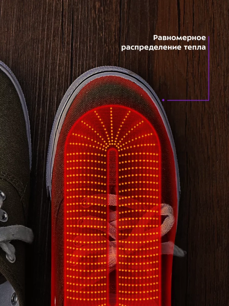 Щадящий температурный режим сушки сводит к минимуму деформацию и повреждение обуви.