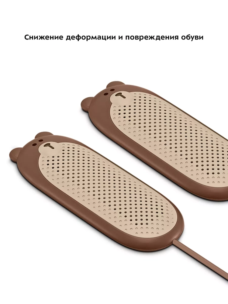 На сушилке находится множество отверстий, которые позволяют равномерно распределять по всему объему обуви тепло и делать процесс удаления влаги быстрым и качественным.