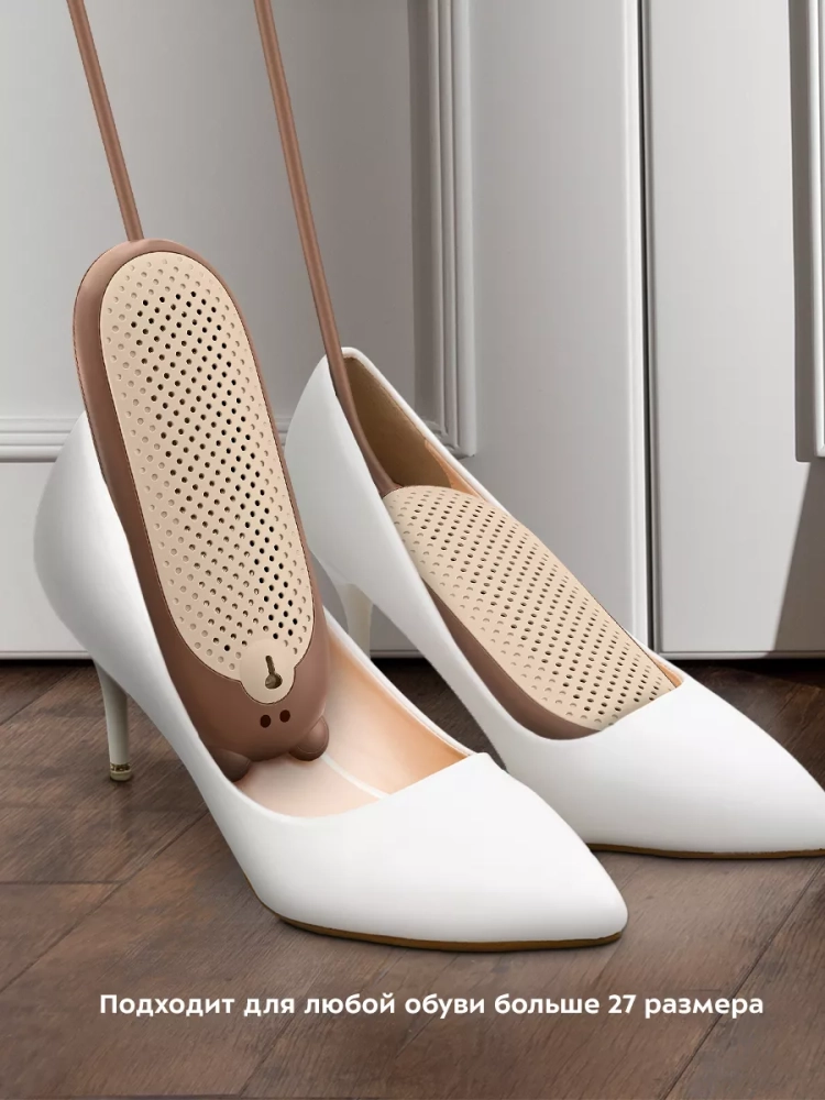 Сушилка хорошо располагается практически в любой обуви больше 27 размера (17 см).
