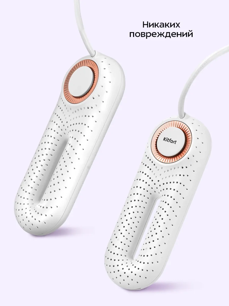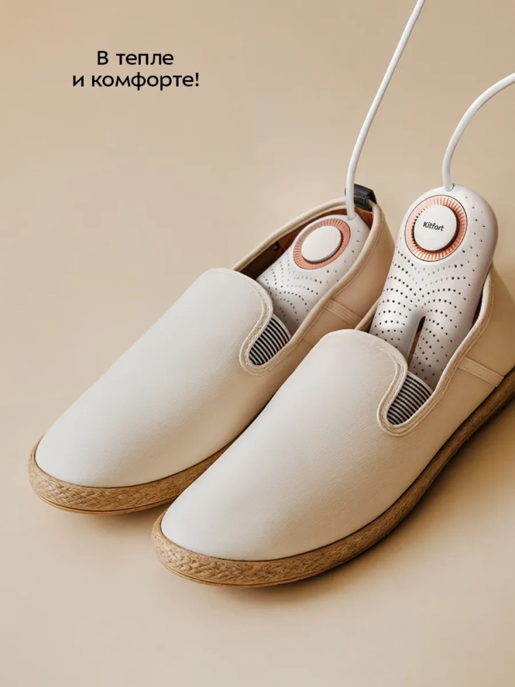 Сушилка для обуви Kitfort KT-6968 эффективно высушит любую промокшую после дождя или снега обувь. Также сушилку можно использовать для сушки обуви после долгого рабочего дня, так как при длительном ношении обувь становится влажной из-за пота. Такая процедура сушки обуви снижает риск развития грибка ног.