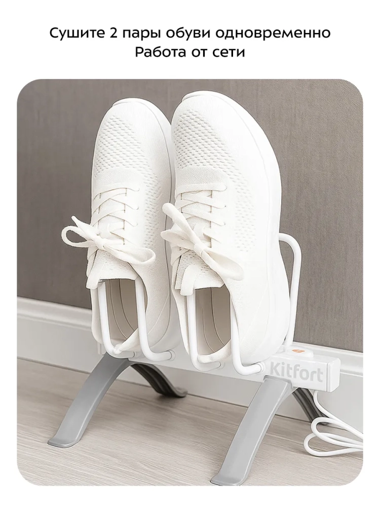 Эта электрическая сушилка идеально подходит для сушки обуви после дождя или стирки, предотвращая деформацию и сохраняя первоначальный вид обуви. Сушилки Kitfort обеспечивают равномерный подогрев, что способствует быстрому и качественному высушиванию обуви и одежды. Электрическая сушилка для обуви и одежды оснащена специальным стеллажом, который позволяет сушить несколько пар обуви одновременно, а также размещать одежду и другие вещи.