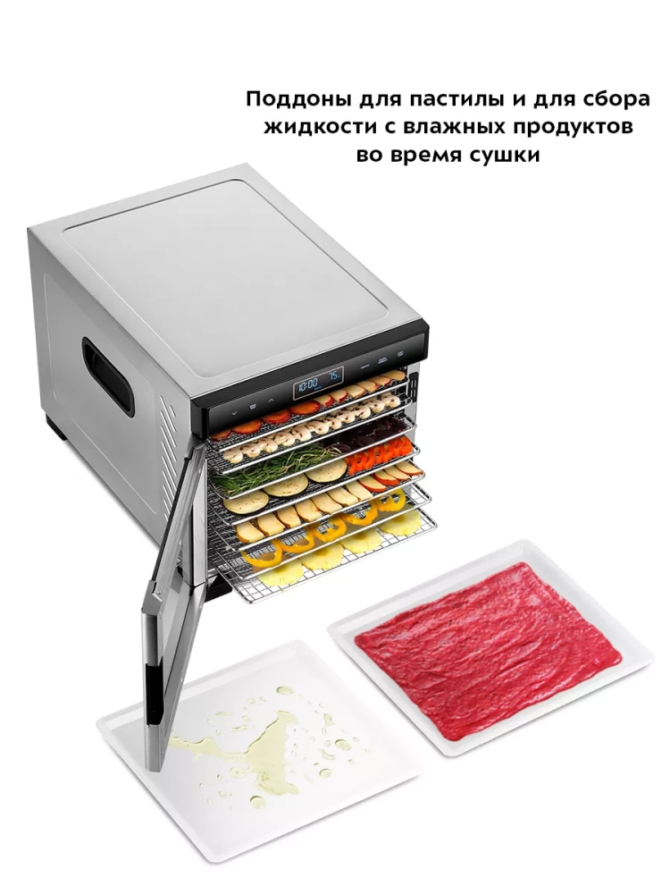 Кухонная электросушилка также отлично справляется с задачей сушки мяса и рыбы, позволяя приготовить натуральные сушки и рыбку без дополнительных усилий. Использование дигидратора для приготовления сушек мяса и зелени — это практичный способ создать полезные вещи для любого нового года. Даже хлеба могут быть компактно и равномерно высушены благодаря продуманной конструкции устройства.
