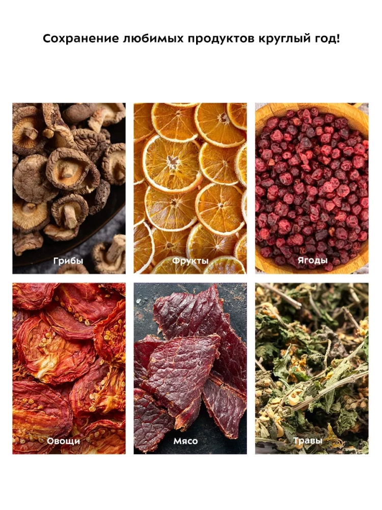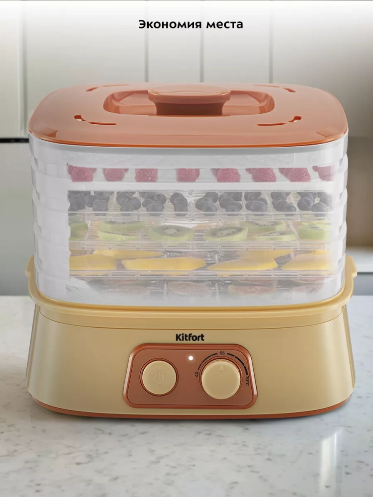 Электрическая сушилка Kitfort КТ-1990 предназначена для сушки овощей, фруктов, ягод, грибов, корнеплодов, трав и зелени, а также хлеба.