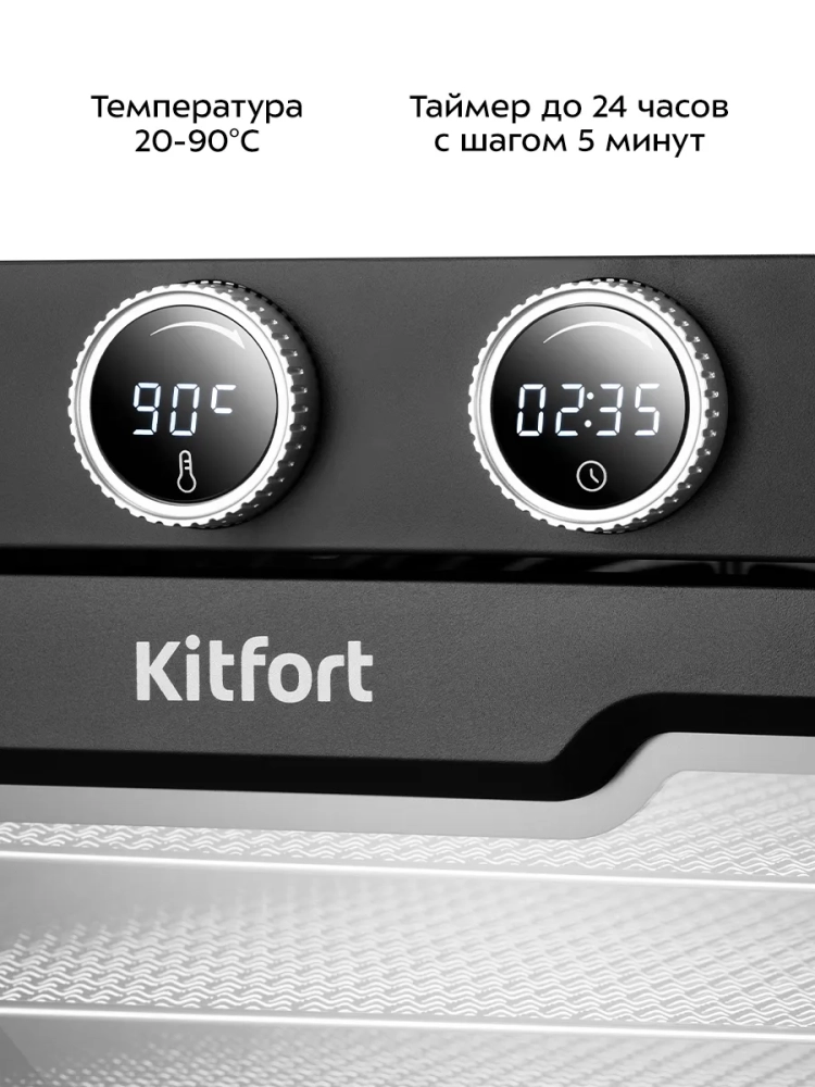 Электрическая сушилка Kitfort КТ-1997 предназначена для сушки овощей, фруктов, ягод, грибов, корнеплодов, трав и зелени, а также мяса и рыбы, хлеба.