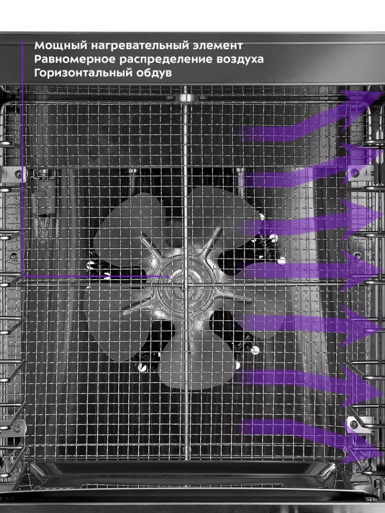 В сушилку установлен мощный нагревательный элемент и вентилятор, обеспечивающий равномерное распределение нагретого воздуха по всему объему камеры. Благодаря горизонтальному обдуву смешение запахов при одновременной сушке разных продуктов минимально.