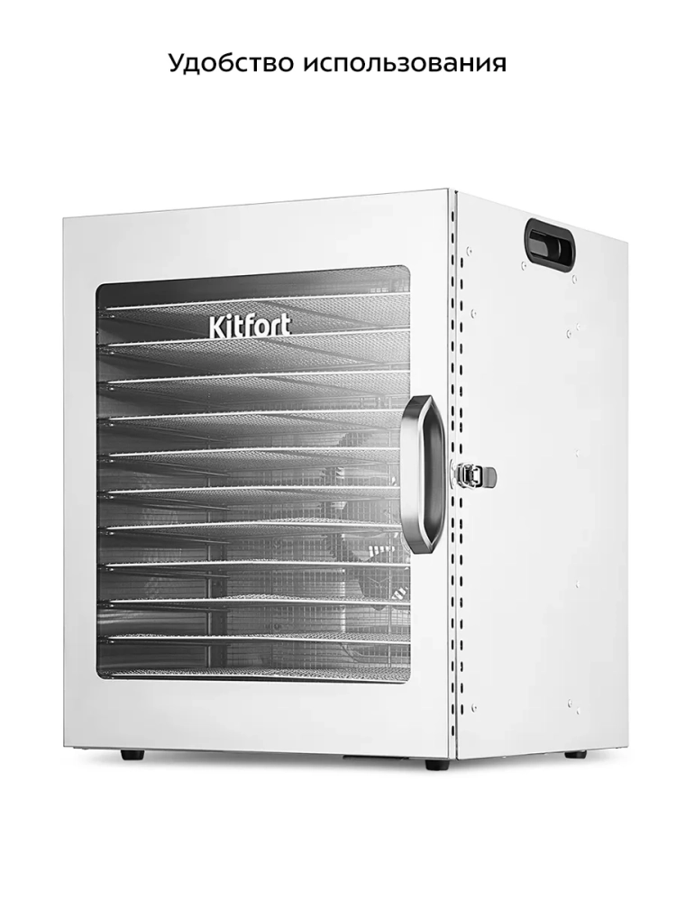 Электрическая сушилка Kitfort КТ-4911 предназначена для сушки овощей, фруктов, ягод, грибов, корнеплодов, трав и зелени, хлеба, а также мяса и рыбы.