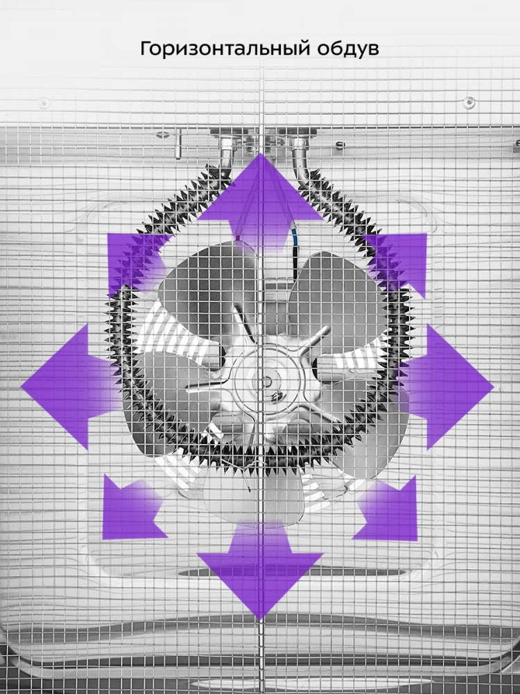 В сушилку установлен мощный нагревательный элемент и вентилятор, обеспечивающий равномерное распределение нагретого воздуха по всему объему камеры. Благодаря горизонтальному обдуву смешение запахов при одновременной сушке разных продуктов минимально.