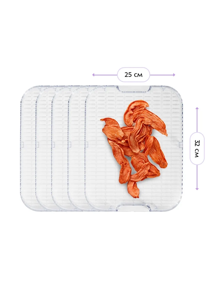 Электрическая сушилка оснащена удобным таймером и индикатором работы, что делает процесс сушки максимально простым и удобным. Дегидратор имеет несколько поддонов, которые обеспечивают равномерное распределение тепла и позволяют сушить различные продукты одновременно. Это кухонная техника, которая станет незаменимым помощником на вашей кухне.