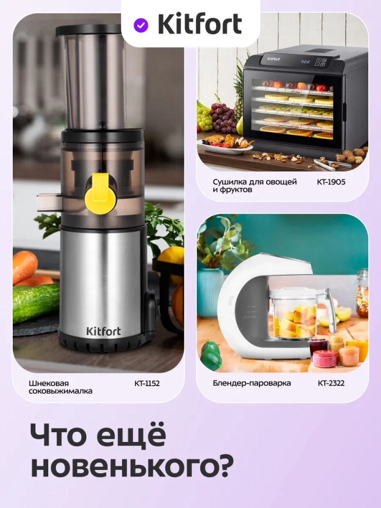 Электрическая сушилка Kitfort КТ-1915 предназначена для сушки овощей, фруктов, ягод, грибов, корнеплодов, трав и зелени, а также мяса и рыбы, хлеба. С помощью специального поддона для жидкости можно готовить пастилу. Сушилка имеет в комплекте 4 поддона из нержавеющей стали и 1 поддона для жидкости. В сушилке установлен мощный нагревательный элемент и вентилятор большого диаметра, обеспечивающий равномерное распределение нагретого воздуха по всему объему камеры. Благодаря горизонтальному обдуву смешение запахов при сушке одновременно разных продуктов минимально. На сушилке можно установить температуру сушки в диапазоне 35-70 *С с шагом 5 градусов. Сушилка оснащена таймером до 24 часов работы с шагом 1 час.