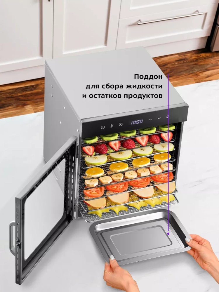 В комплекте к сушилке идут 8 металлических поддонов и 1 поддон для жидкости.