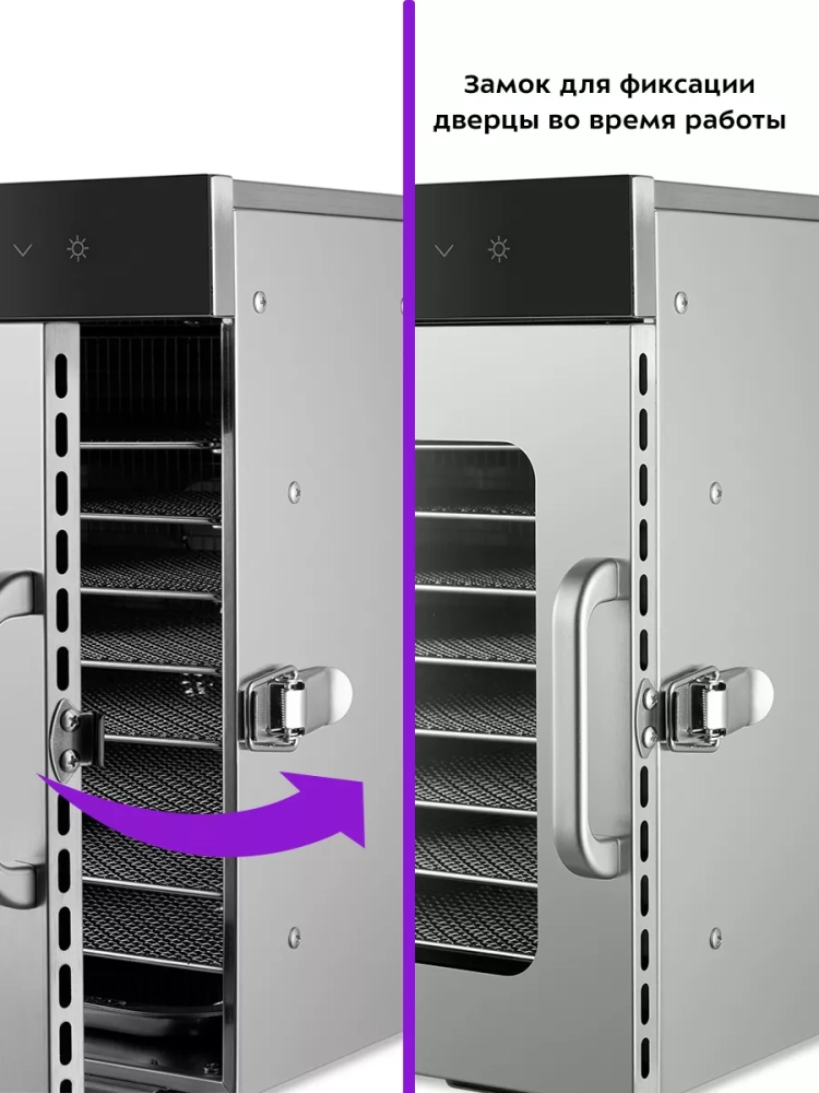 Также в сушилке есть подсветка, благодаря которой, вы сможете наблюдать за процессом сушки.