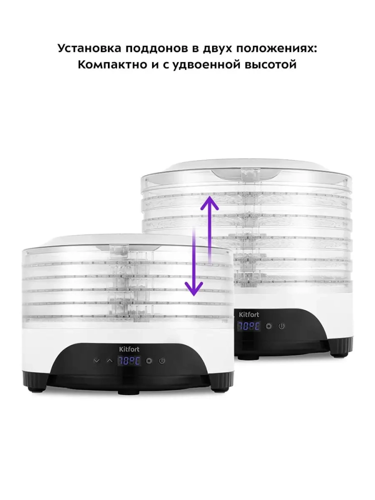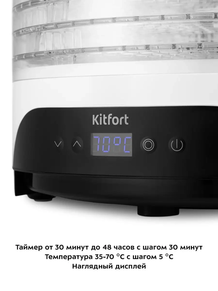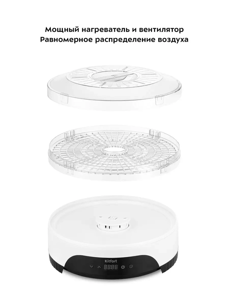 Электрическая сушилка для овощей и фруктов Kitfort КТ-1953 предназначена для сушки овощей, фруктов, ягод, грибов, корнеплодов, трав и зелени, а также хлеба.