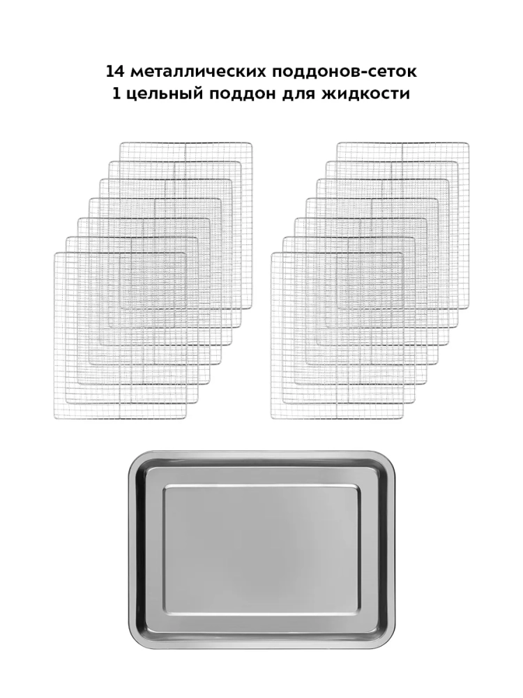 В комплекте к сушилке идут 14 металлических поддонов и 1 поддон для жидкости.