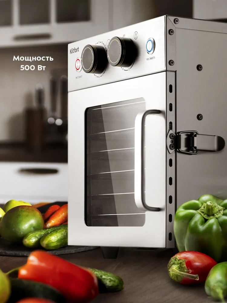 Электрическая сушилка Kitfort КТ-4902 предназначена для сушки овощей, фруктов, ягод, грибов, корнеплодов, трав и зелени, а также мяса и рыбы, хлеба.