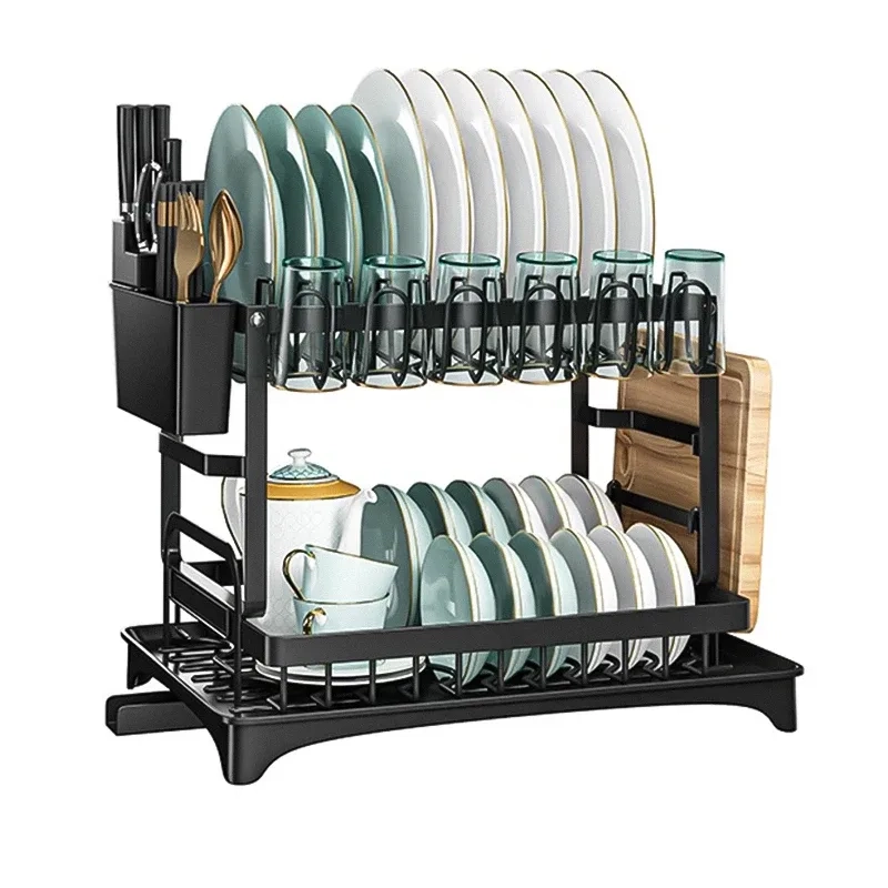 Наша сушилка из прочного материала, имеет два яруса поддон и слив, отсек для ножей и вилок, держатель для доски из прочного материала, на сушилке можно расположить тарелки, стаканы, вилки, ложки и другие предметы бытовой посуды, которые нужно высушить после мытья. Сушилка двухъярусная позволяет сушить большое количество посуды инвентарь в один и тот же момент времени.