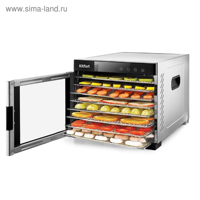 Сушилка для овощей и фруктов Kitfort КТ-1911, 650 Вт, 6 ярусов, 35-75 °С, серебристая
