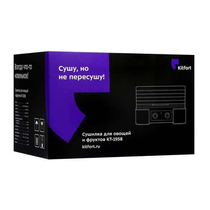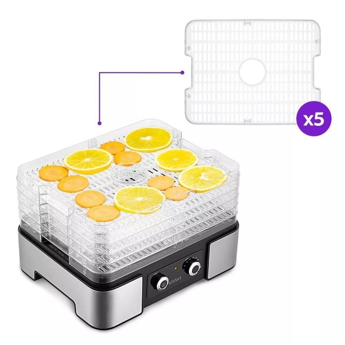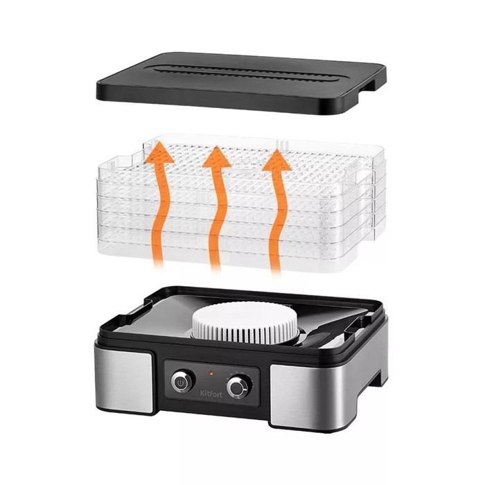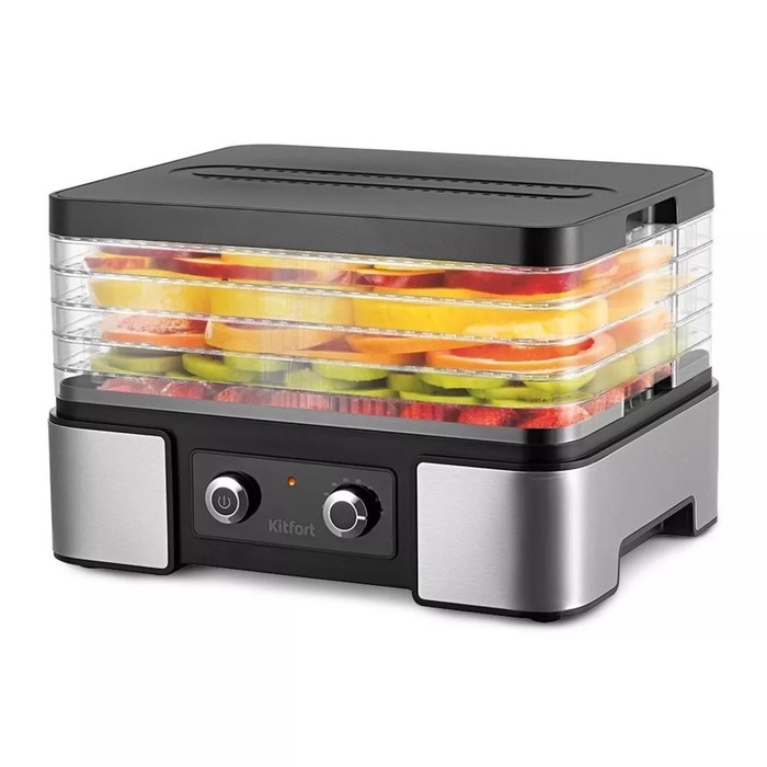 Сушилка для овощей и фруктов Kitfort КТ-1958, 450 Вт, 5 ярусов, таймер, серебристо-чёрная