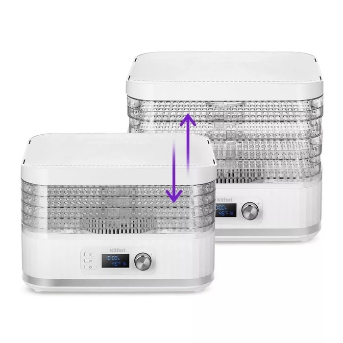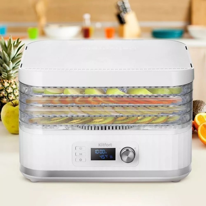 Сушилка для овощей и фруктов Kitfort КТ-1959, 450 Вт, 5 ярусов, таймер, белая