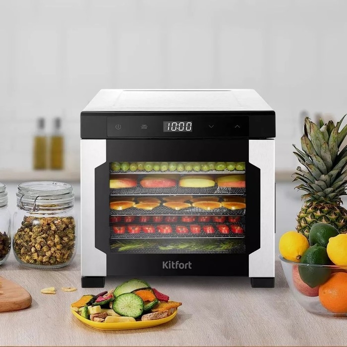 Сушилка для овощей и фруктов Kitfort KT-1963, 600 Вт, 6 ярусов, чёрно-серебристая