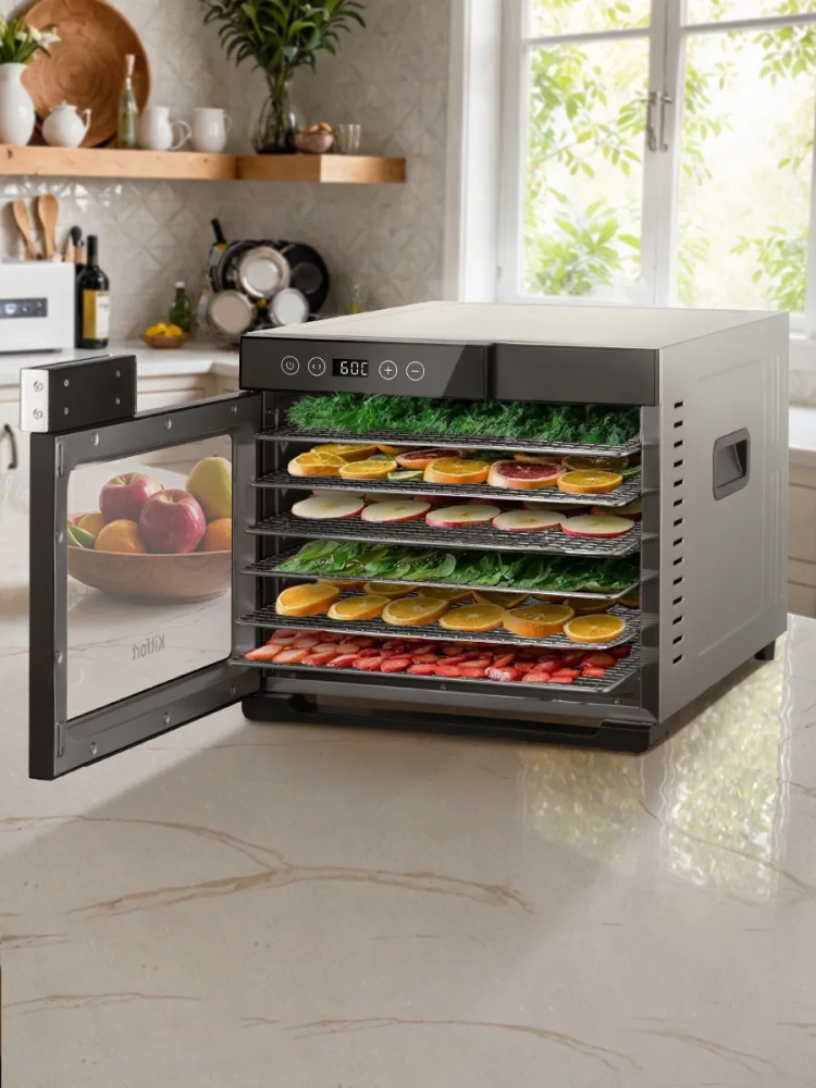 Электрическая сушилка Kitfort KT-4941 предназначена для сушки овощей, фруктов, ягод, грибов, корнеплодов, трав и зелени, а также мяса и рыбы, хлеба.