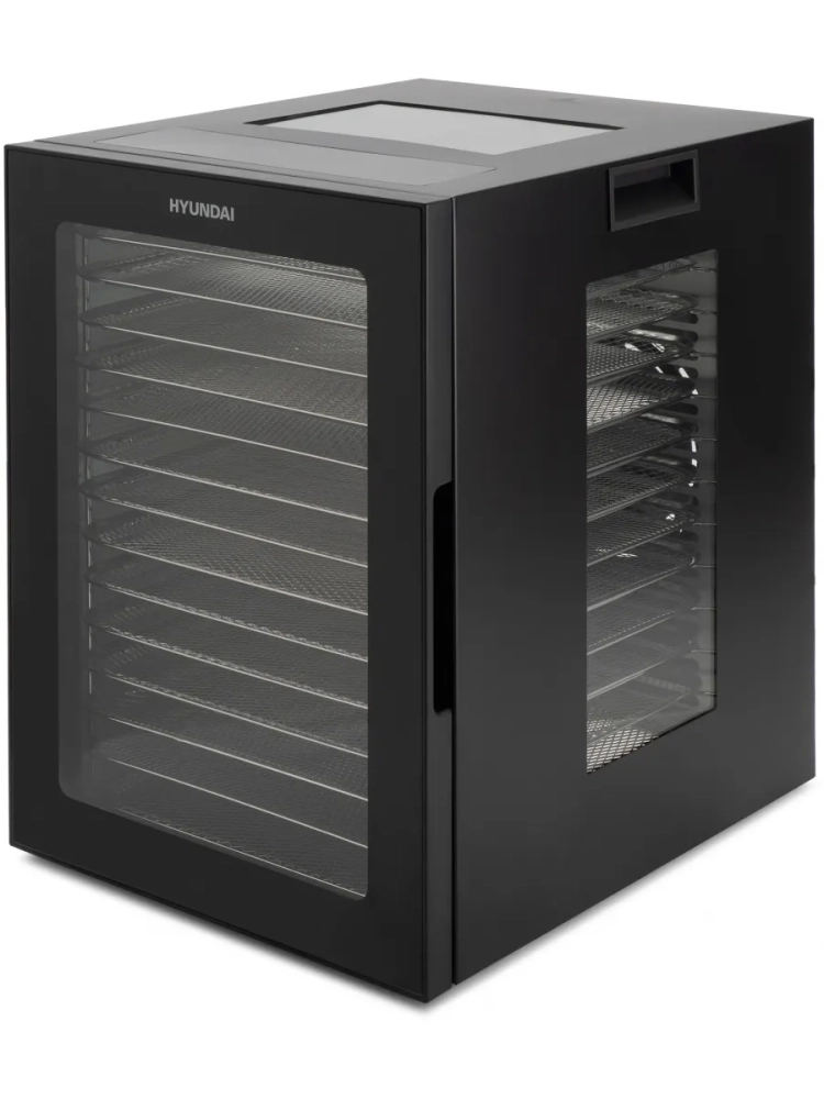 Особенностью HYFD-8803 является ее продуманная конструкция, включающая в себя лампу подсветки для контроля за процессом сушки, а также два дополнительных смотровых окна сверху и сбоку. Окна позволяют наблюдать за продуктами со всех сторон, не нарушая температурный режим внутри камеры. Широко открывающаяся дверца обеспечивает легкий и удобный доступ к поддонам, делая процесс загрузки и выгрузки максимально комфортным.