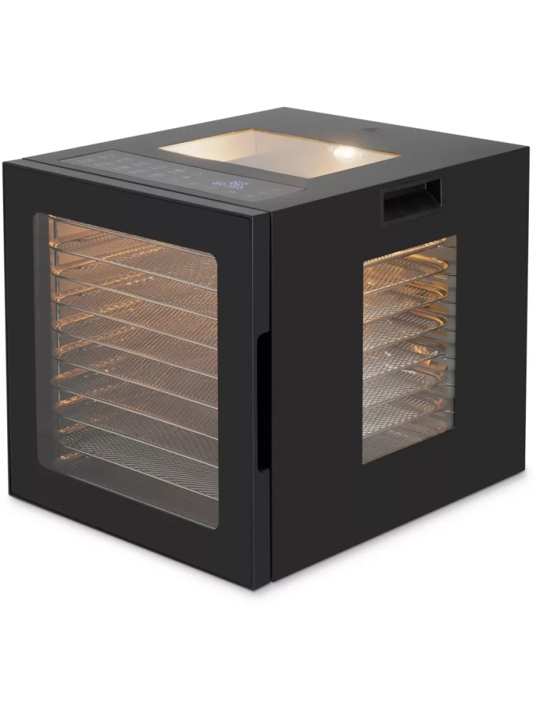 Обладая мощностью 850 Вт, Hyundai HYFD-8804 обеспечивает равномерное и эффективное обезвоживание продуктов. 10 уровней сушки с 20 просторными поддонами позволяют обрабатывать большое количество ингредиентов одновременно, что делает процесс заготовки быстрым и удобным. Диапазон регулировки температуры от 35°C до 75°C дает возможность подобрать оптимальный режим для каждого вида продуктов, будь то сочные фрукты, нежные травы или плотные куски мяса. Сенсорное управление и встроенный таймер делают эксплуатацию сушилки интуитивно понятной и легкой.