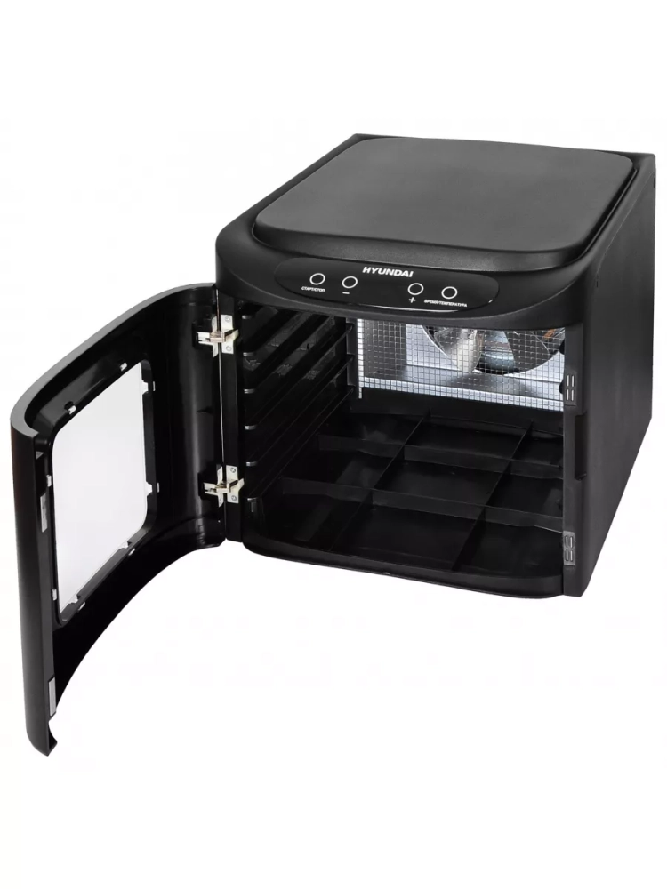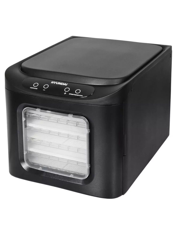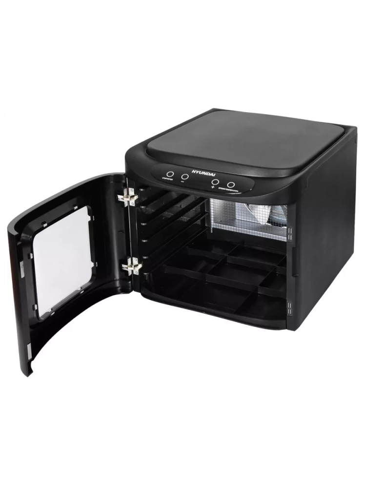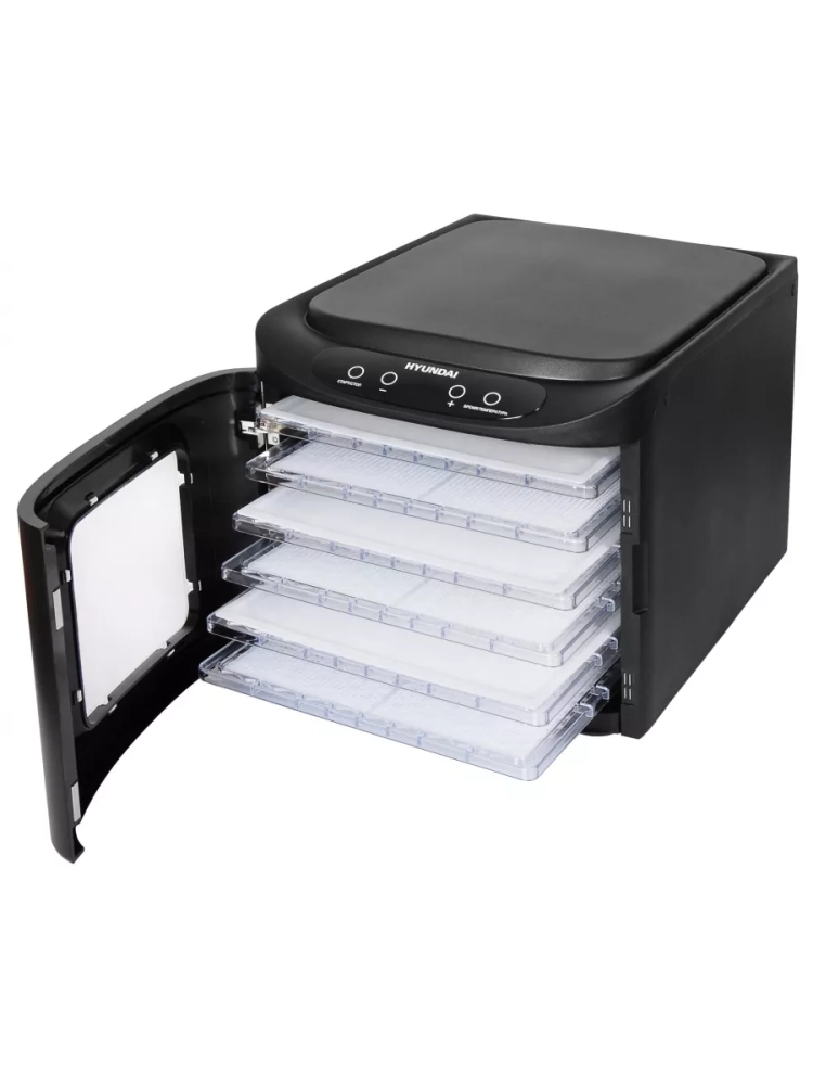 Сушка для фруктов и овощей Hyundai HYFD-P1203 черный, мощность 500Вт, поддонов: 12шт, температура сушки от 35С до 70С. Вертикальное размещение вентилятора дает лучшую просушку без необходимости преставления поддонов. Интуитивное управление, таймер до 19ч. В комплекте 6 пластиковых поддонов для сушения, 3 поддона для приготовления пастилы, 3 поддона для сушения трав и мелких продуктов.
