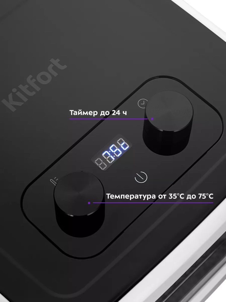 Этот дигидратор станет незаменимым помощником на кухне как летом во время сбора урожая, так и зимой при заготовке сухофруктов или травяных сборов. Овощесушилка Kitfort КТ-1966 сочетает в себе функциональность и простоту использования благодаря интуитивно понятной панели управления.
