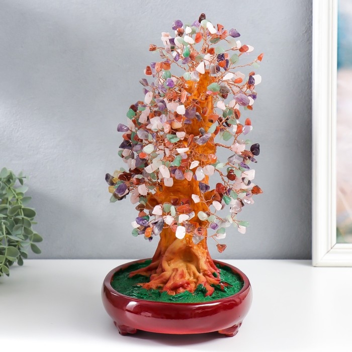 Сувенир бонсай "Денежное дерево с разноцветными камушками" 450 камней 32х17х27 см