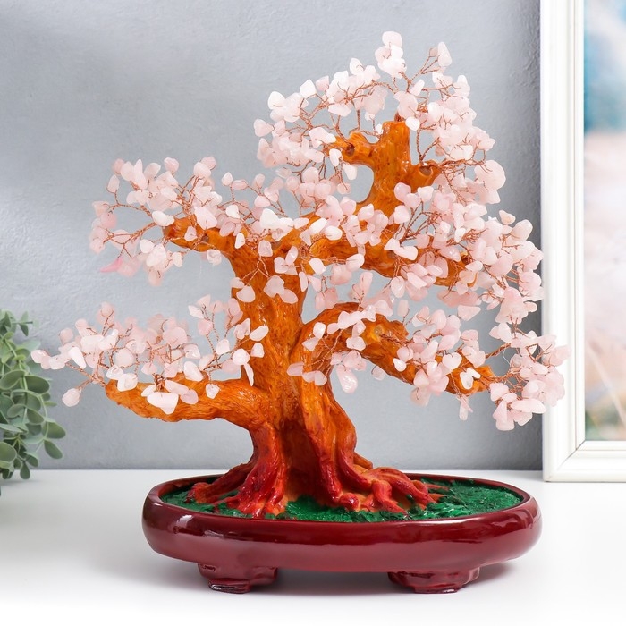 Сувенир бонсай "Денежное дерево с розовыми камушками" 450 камней 32х17х27 см