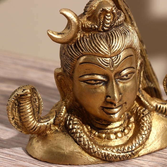 Сувенир "Бюст Шивы" 2 змеи, латунь 8 см
