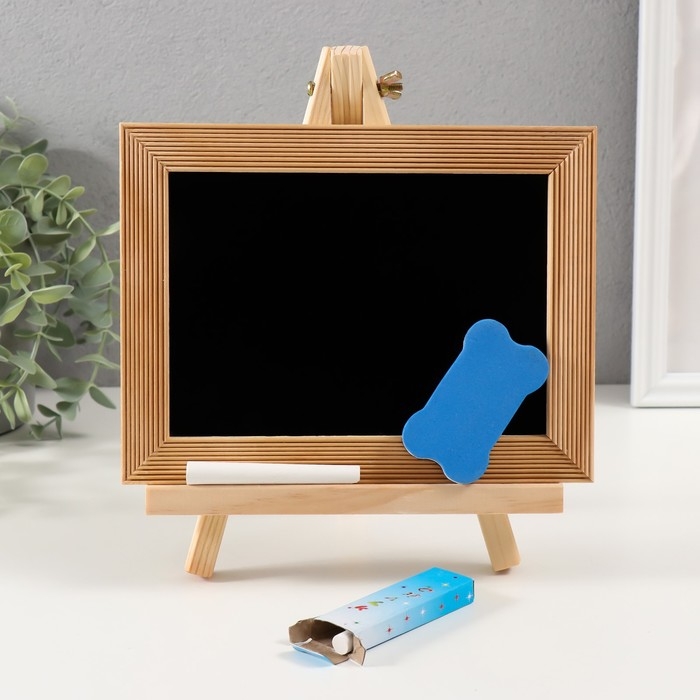Сувенир дерево "Меловая доска на мольберте" губка + мелки 3,5х21х24 см