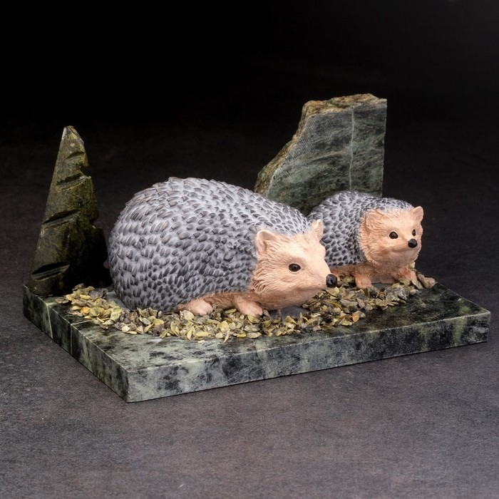 Сувенир "Ежи", 10х15х6 см, змеевик, гипс